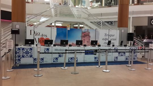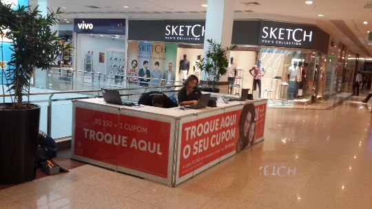 Aproveitamento de loja vazia com estrutura para ação promocional de troca de notas
