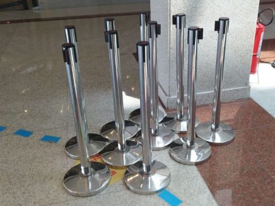 Pedestal para isolamento cromado com fita preta de 2m