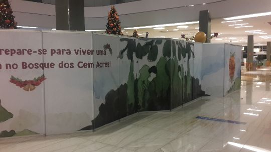 Parede estruturada com painéis modulares para fechamento e tapume de shopping
